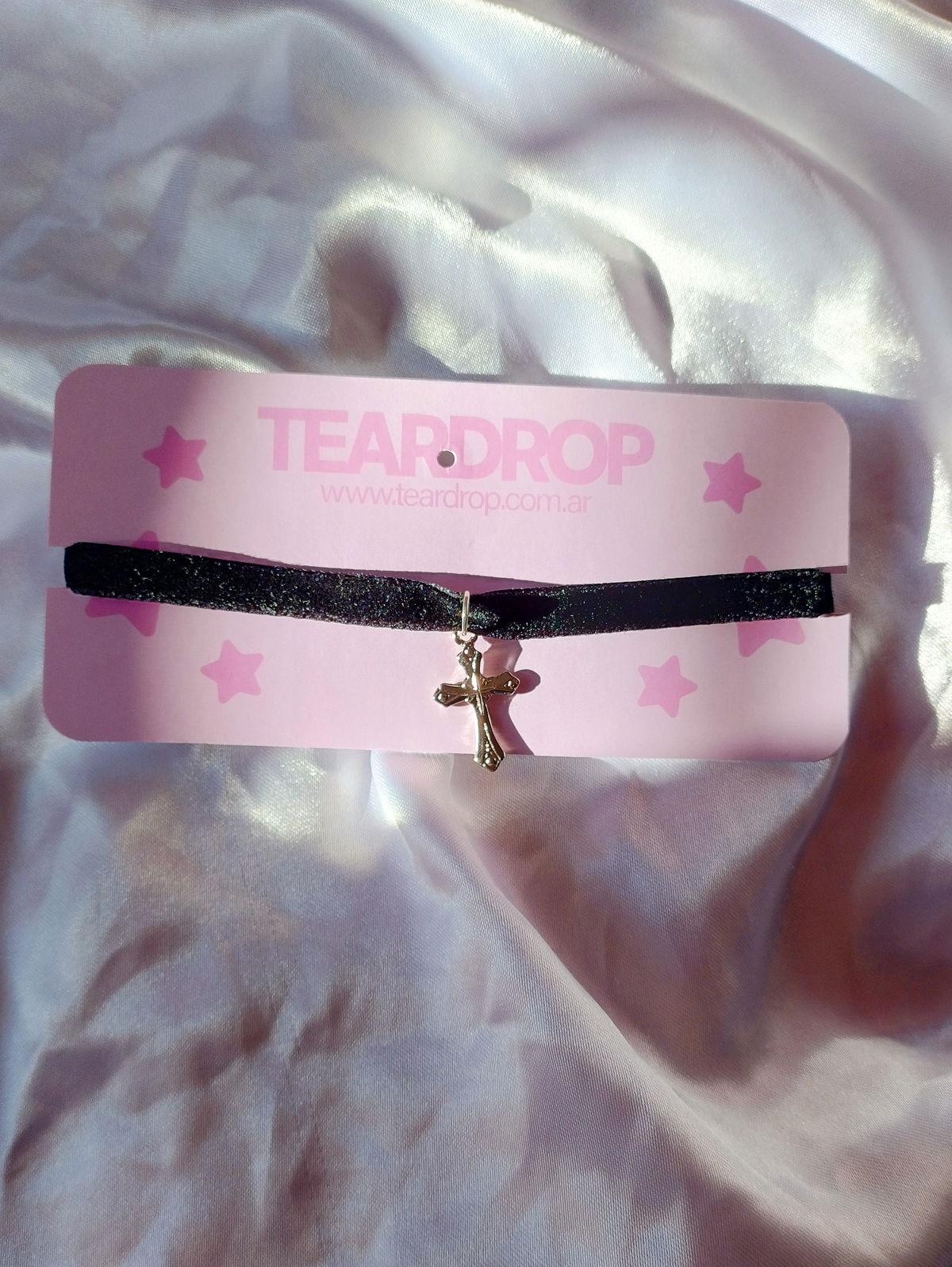 producto: choker con cinta de terciopelo negro y dije niquelado