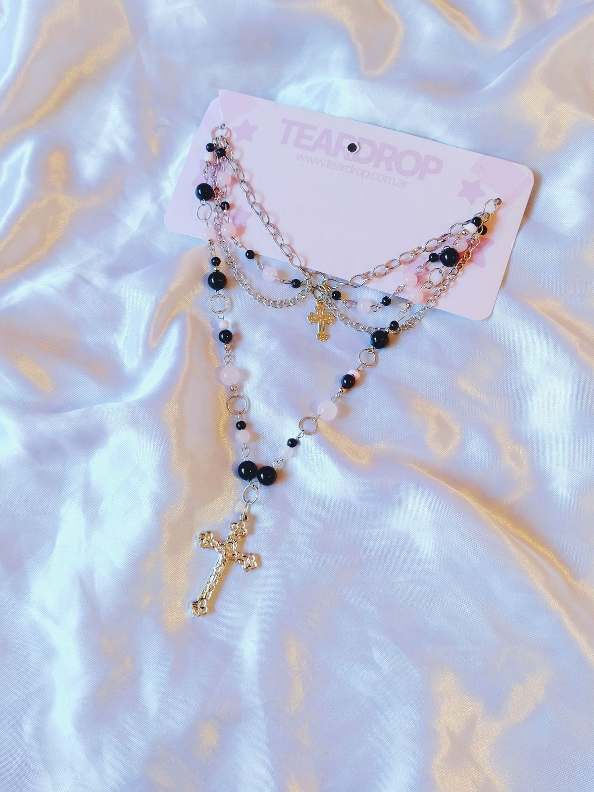 perlas: negras y rosas plásticas