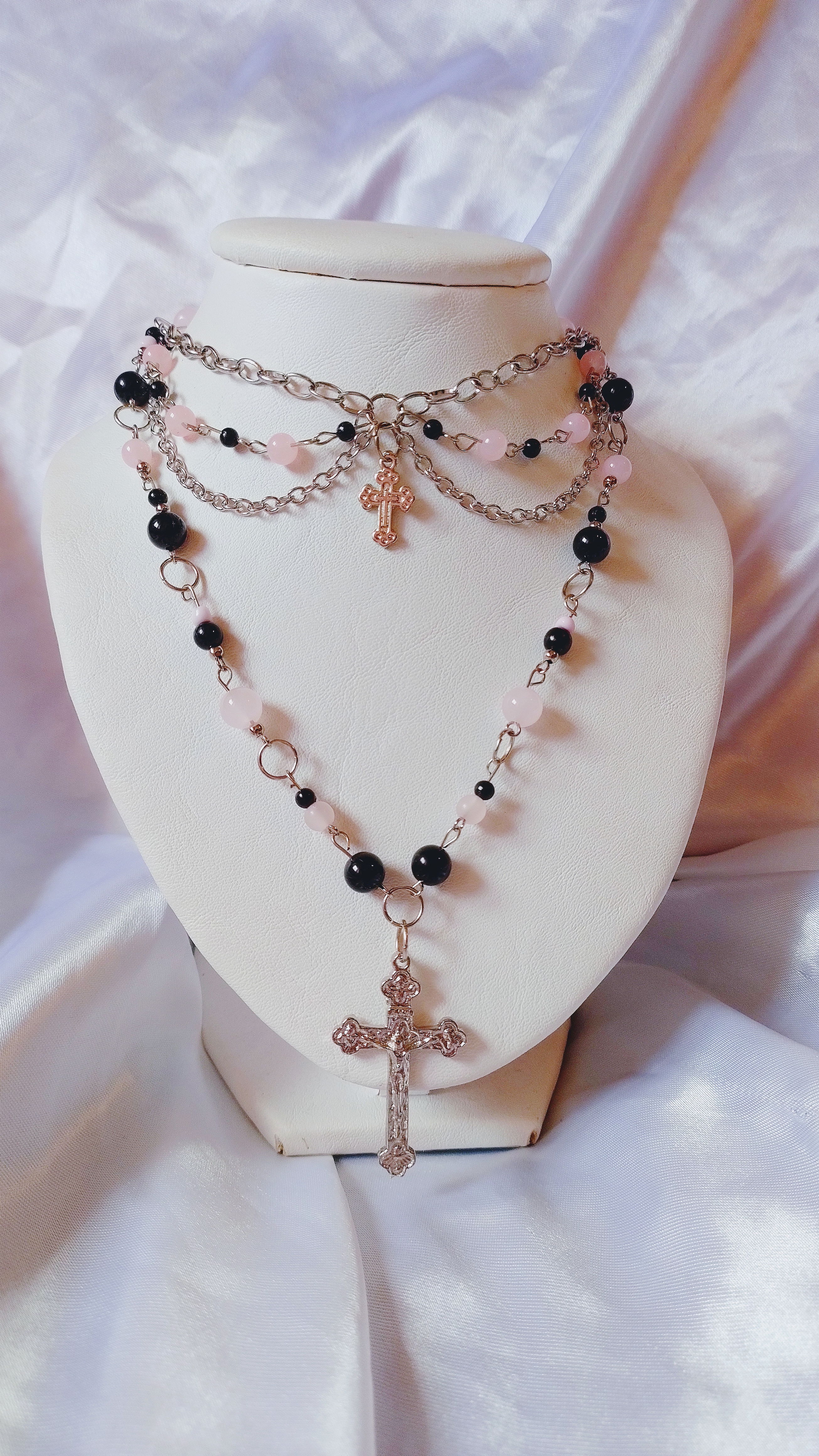 perlas: negras y rosas plásticas