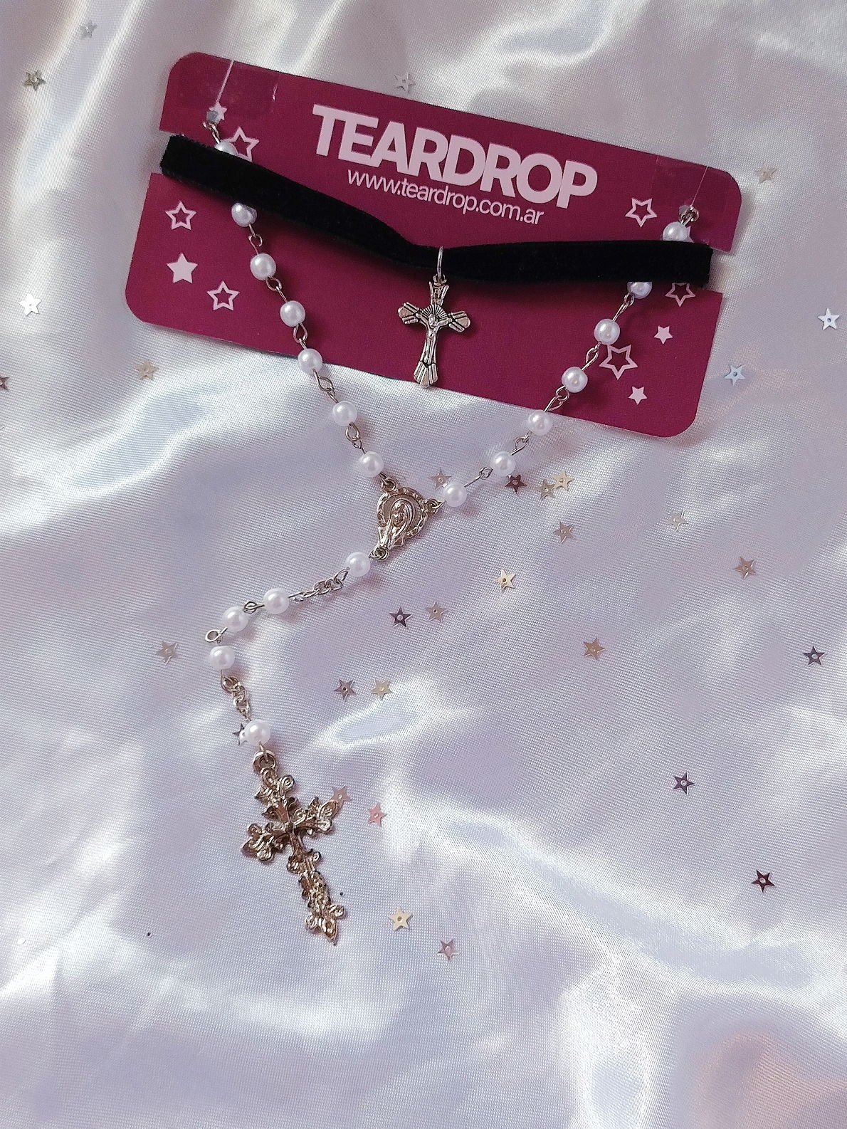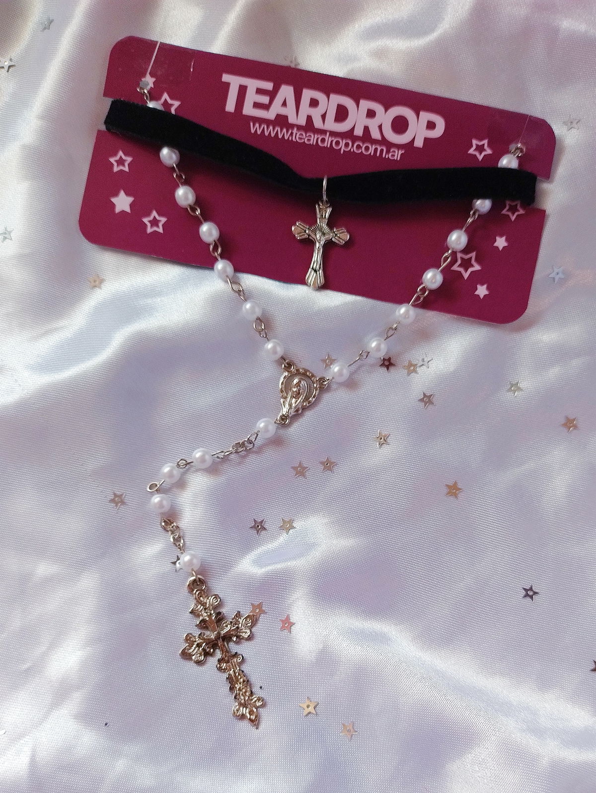 producto: collar desmontable compuesto por rosario y choker de terciopelo