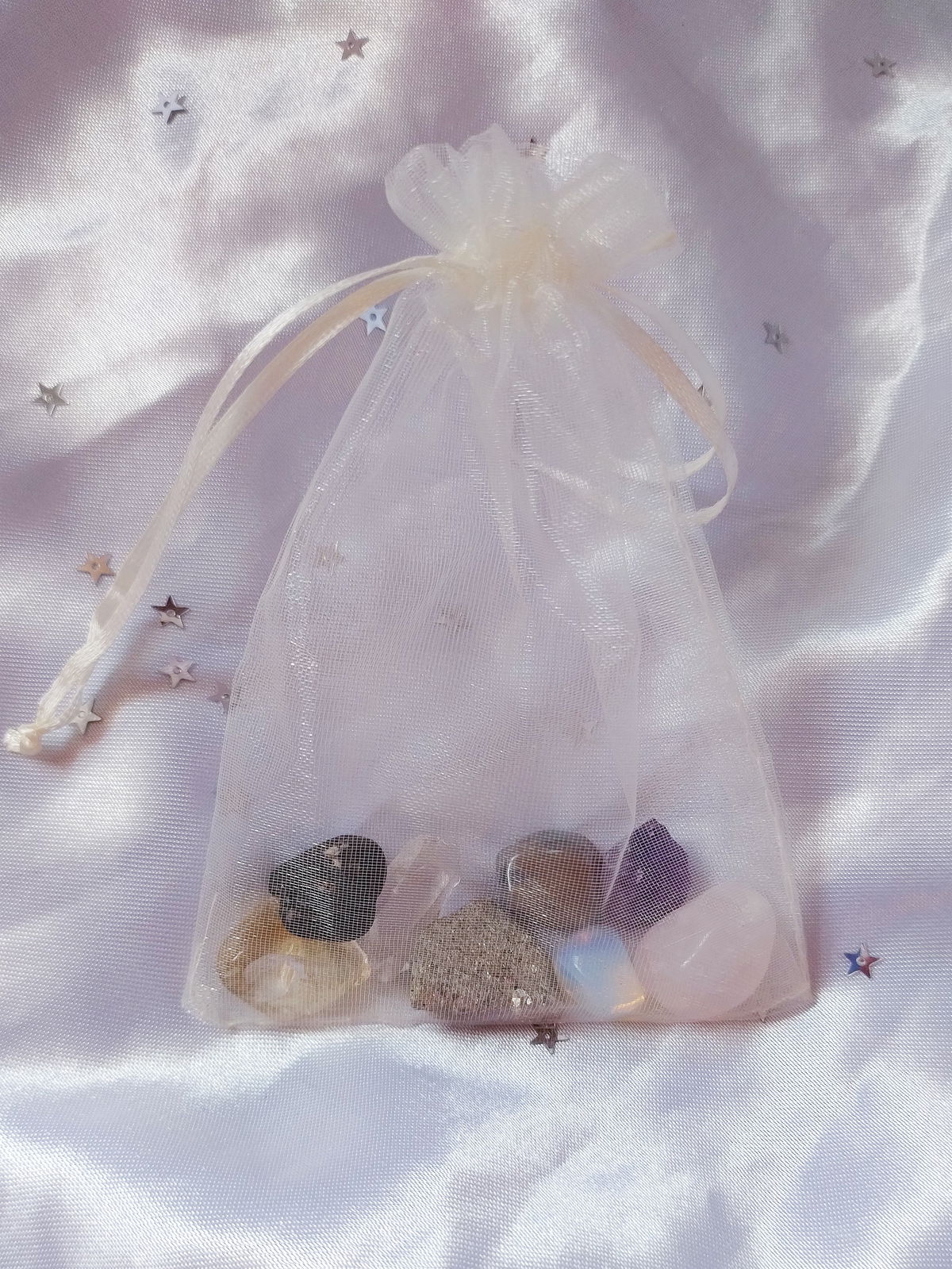 amatista - citrino - cuarzo cristal - turmalina negra - opalina - fluorita - pirita - cuarzo rosa
